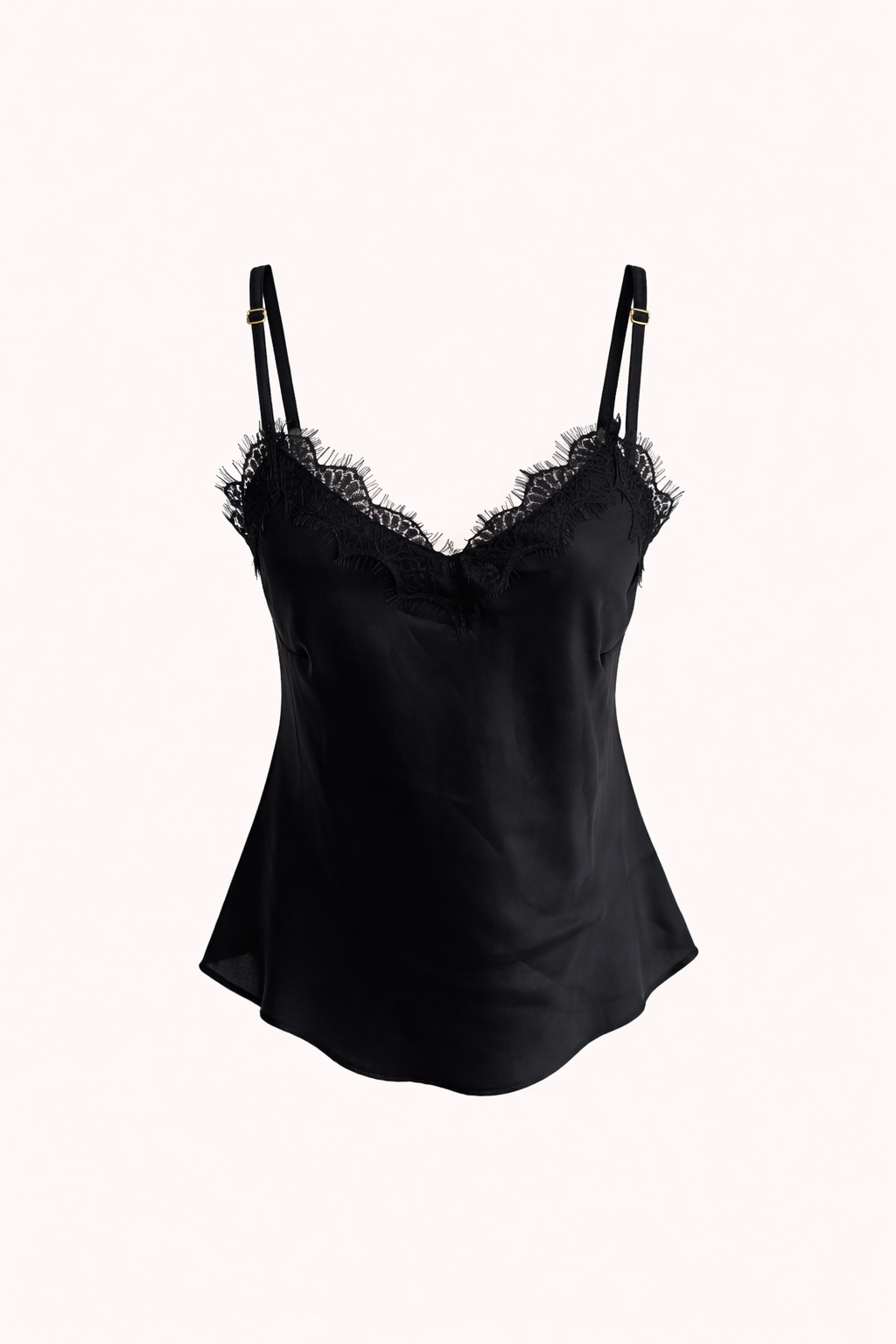 Blusa preta de alça fina com detalhe em renda delicada no decote, que traz um toque feminino e sofisticado à peça. Possui modelagem levemente solta ao corpo, proporcionando conforto e elegância na medida certa. Ideal para compor looks versáteis, desde produções mais casuais até combinações noturnas com alfaiataria ou peças em couro.