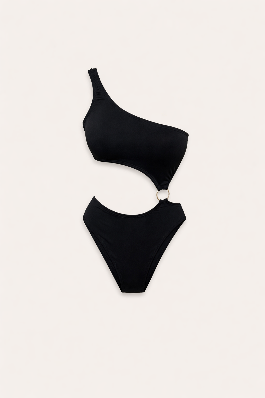 Body preto com modelagem moderna e design assimétrico de um ombro só. Possui recorte estratégico na cintura, valorizando a silhueta, e detalhe em argola metálica que conecta a parte superior à inferior, trazendo um toque sofisticado e fashion. A peça é ajustada ao corpo, confortável e ideal para compor looks noturnos, produções elegantes ou combinações com saias, calças e shorts de cintura alta.