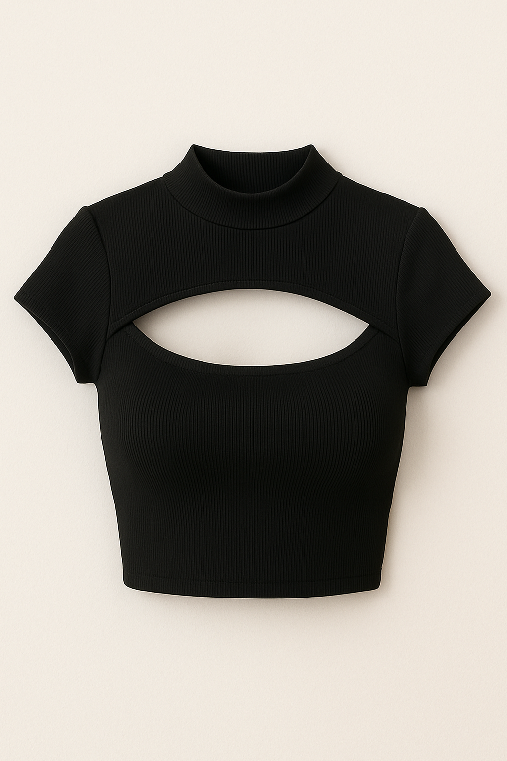 O cropped preto que transforma qualquer look. Com gola alta e recorte frontal que valoriza o busto na medida certa, ele traz um toque moderno e sensual ao visual. Confeccionado em tecido canelado com ótimo caimento, é perfeito para usar com calça jeans, alfaiataria ou saia do dia à noite, sempre com atitude.