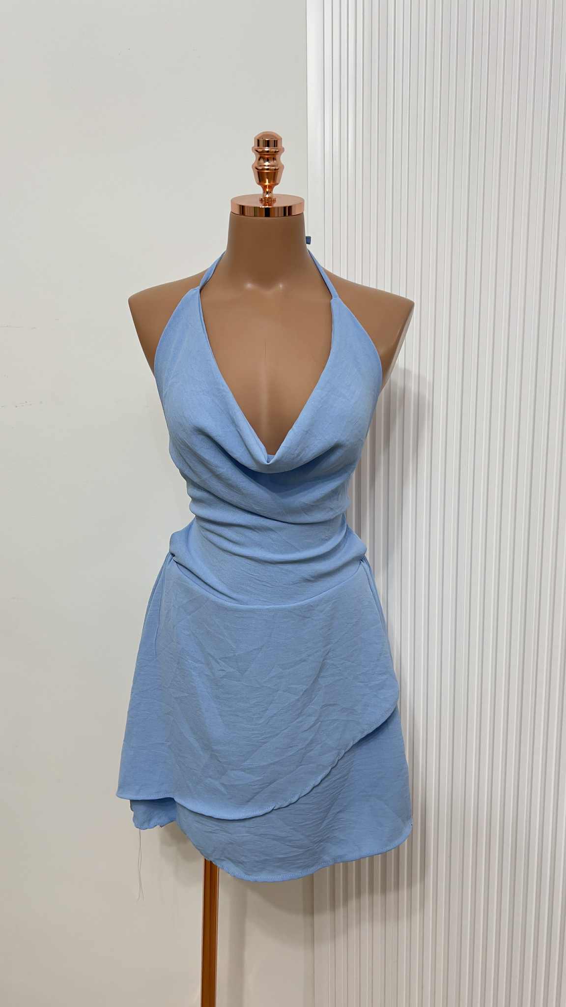 Macaquinho azul com decote drapeado e modelagem soltinha que valoriza o corpo com leveza. Perfeito pra um look fresco, moderno e feminino.